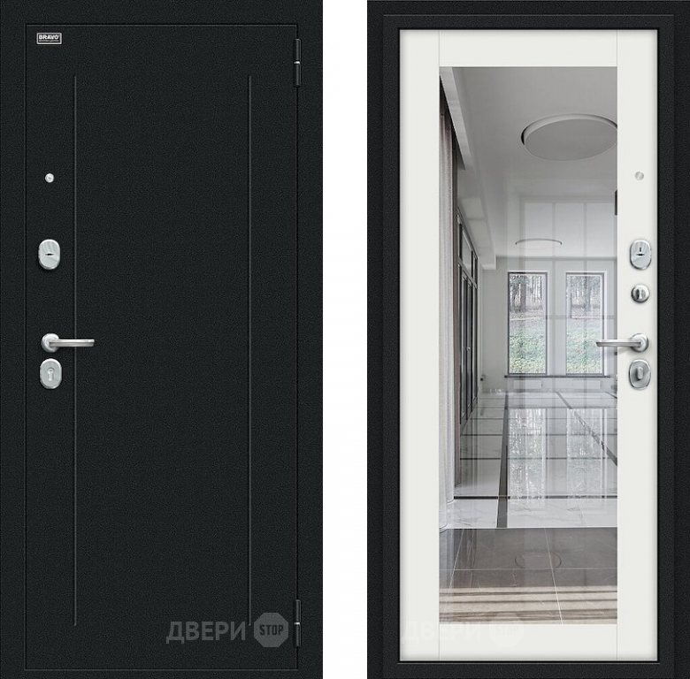 Входная металлическая Дверь Bravo Флэш Букле черное/Bianco Veralinga в Лыткарино 860х2050 мм