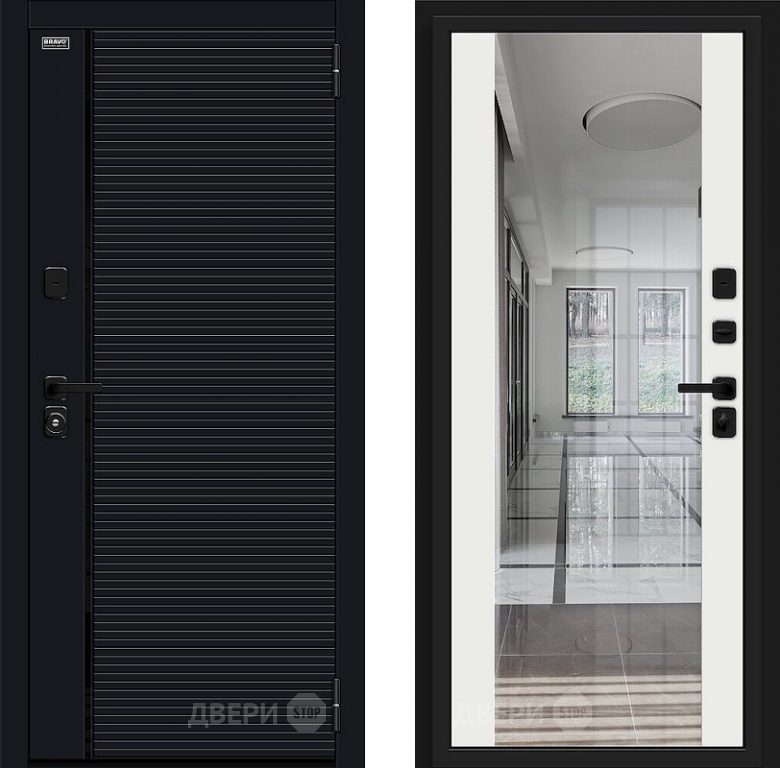 Входная металлическая Дверь Bravo Лайнер-3 Total Black/Off-white в Лыткарино 860х2050 мм