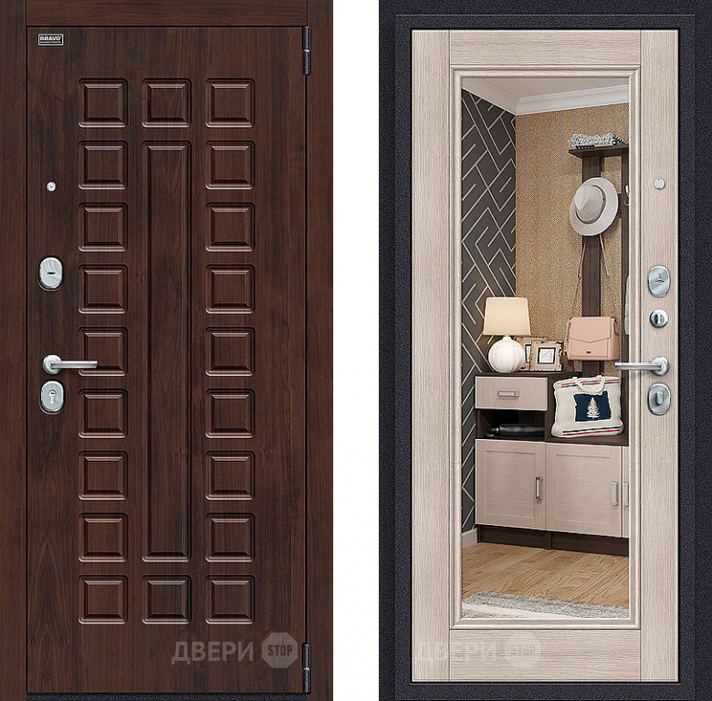 Входная металлическая Дверь Bravo Оптим Урбан с зеркалом Cappuccino Veralinga в Лыткарино 860х2050 мм