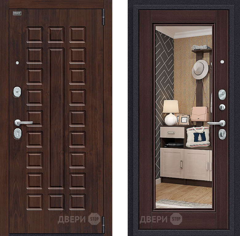 Входная металлическая Дверь Bravo Оптим Урбан с зеркалом Wenge Veralinga в Лыткарино 860х2050 мм