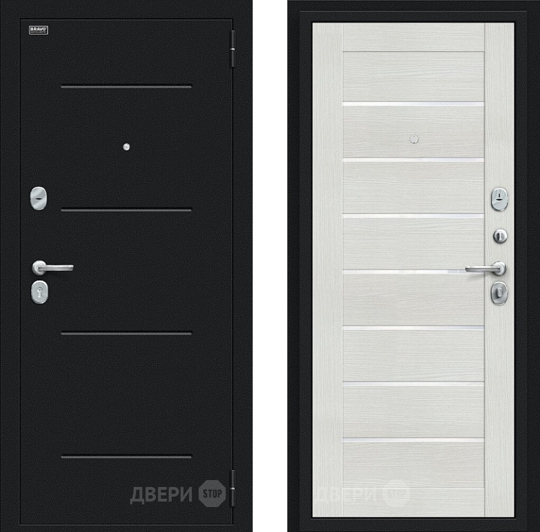 Входная металлическая Дверь Bravo Техно Букле черное/Bianco Veralinga в Лыткарино 860х2050 мм
