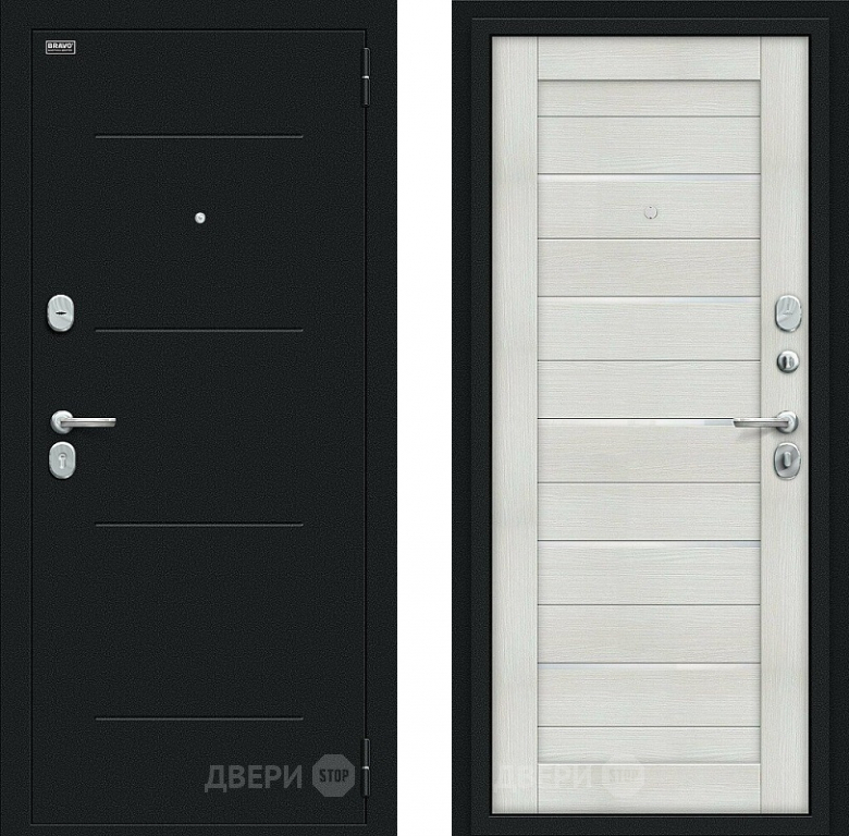 Входная металлическая Дверь Bravo Техно Kale Букле черное/Bianco Veralinga в Лыткарино 860х2050 мм