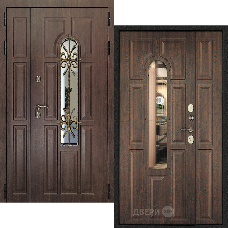Входная металлическая Дверь Дверной Континент Лион Двустворчатая Темный орех в Лыткарино 1100, 1200, 1300 * 2200мм