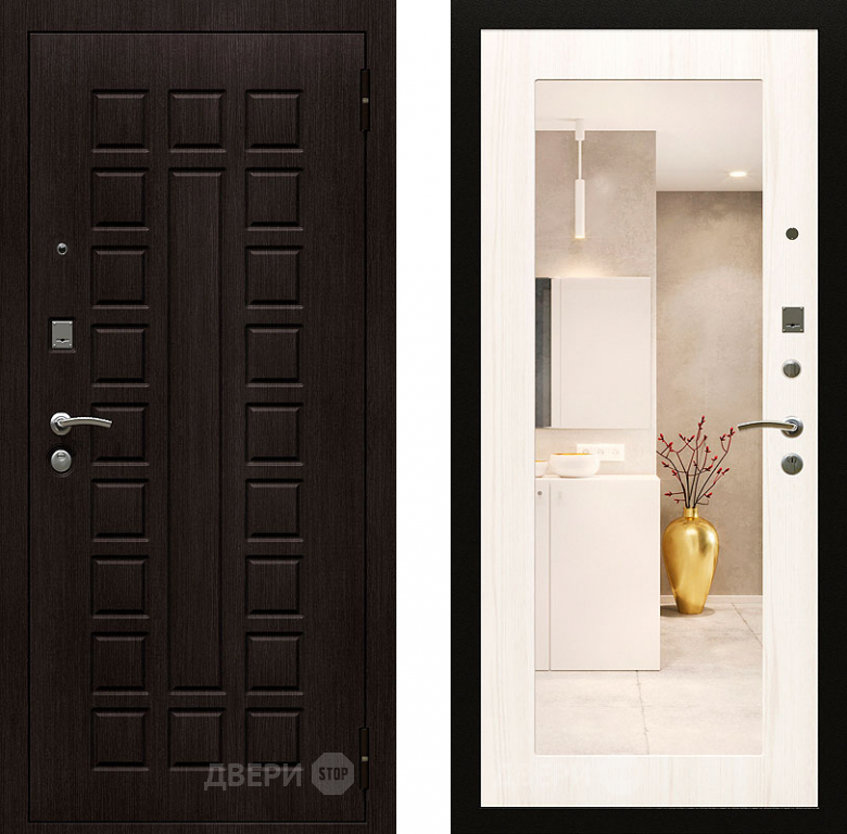 Входная металлическая Дверь Райтвер Сенат-лайф с зеркалом Беленый Дуб в Лыткарино 860х2050 мм