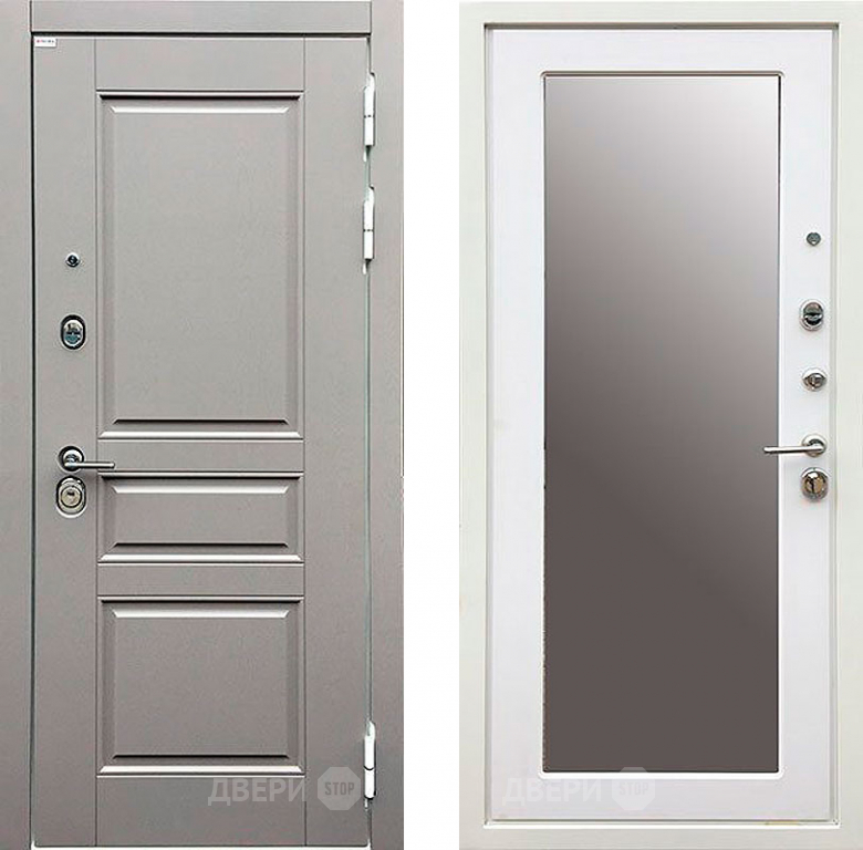 Входная металлическая Дверь Ратибор Лондон 3К с зеркалом Грей софт/Белый софт в Лыткарино 860х2050 мм