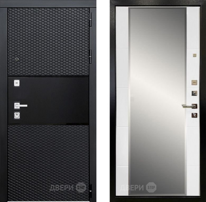 Входная металлическая Дверь Ратибор Прима 3К с зеркалом Белый матовый в Лыткарино 860х2050 мм