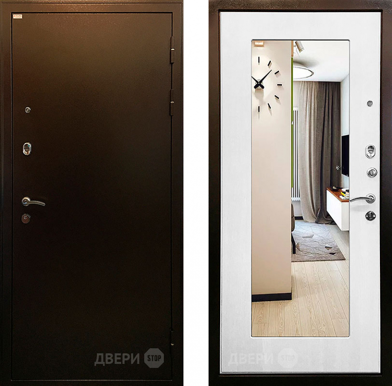 Входная металлическая Дверь Ратибор Милан 3К зеркало Белый ясень в Лыткарино 860х2050 мм