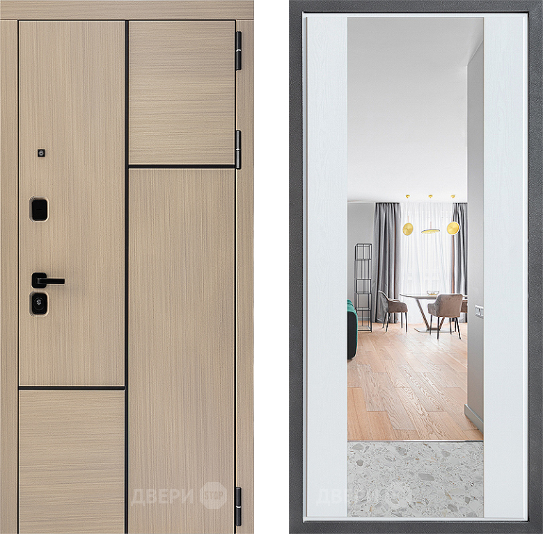 Входная Дверь Дверной континент ДК-14 ФЛЗ-1 Зеркало Белое дерево 860x2050 мм
