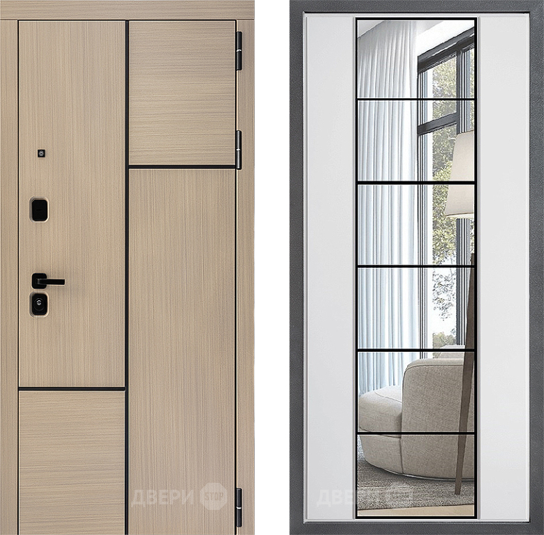 Входная Дверь Дверной континент ДК-14 ФЛЗ-2 Зеркало Белый софт 860x2050 мм