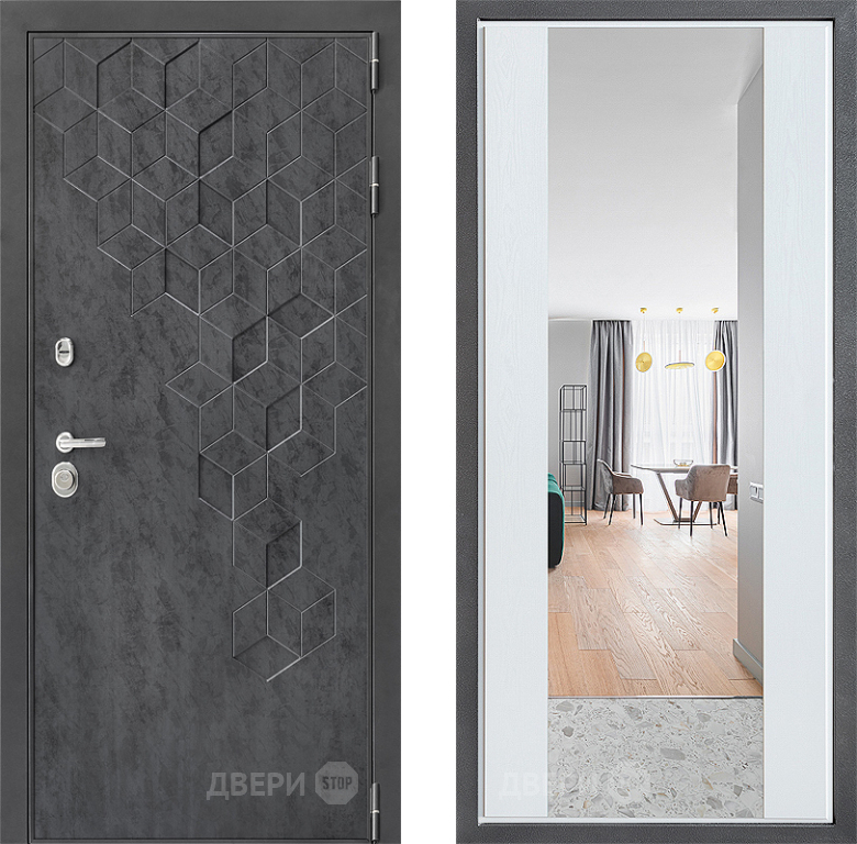 Входная Дверь Дверной континент ДК-3/713 ФЛЗ-1 Зеркало Белое дерево 860x2050 мм