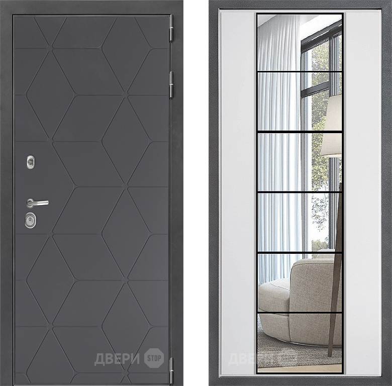 Входная Дверь Дверной континент ДК-3/744 ФЛЗ-2 Зеркало Белый софт 860x2050 мм