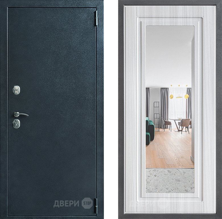 Входная Дверь Дверной континент ДК-70 Дизайн ФЛЗ Зеркало Сандал белый 960x2050 мм