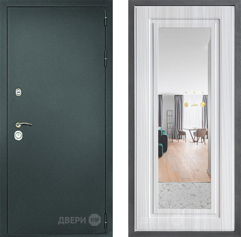 Входная Дверь Дверной континент Рубикон Серебро Дизайн ФЛЗ Зеркало Сандал белый 960x2050 мм