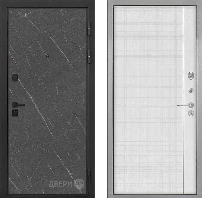 Входная Дверь Интекрон (INTECRON) Профит Black Гранит Лава Оникс В-07 с молдингом Лофт белый 860x2050 мм