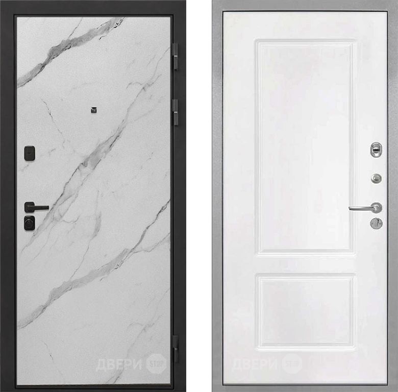 Входная Дверь Интекрон (INTECRON) Профит Black Мрамор Арктик КВ-2 Белый матовый 960x2050 мм