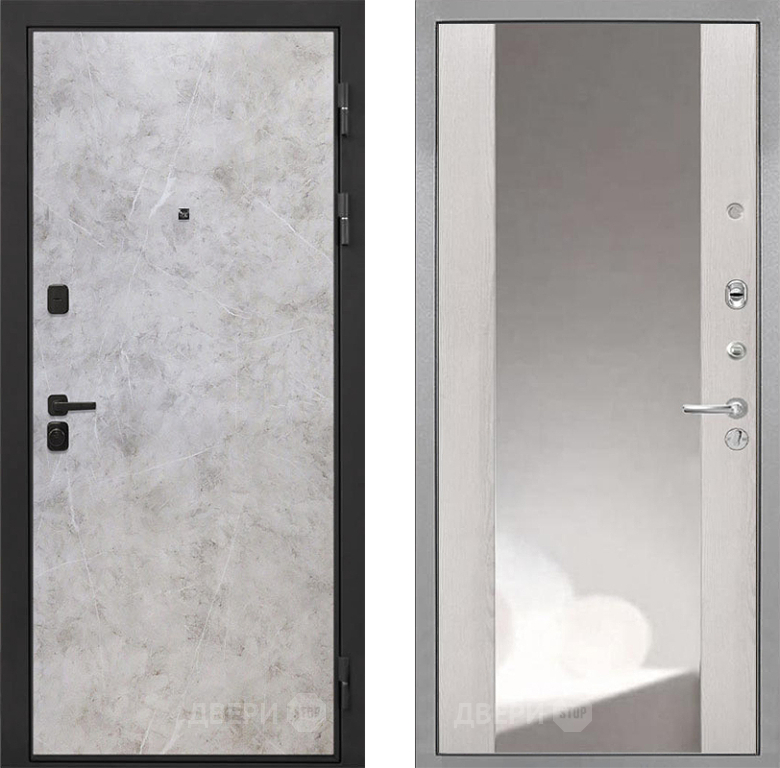 Входная Дверь Интекрон (INTECRON) Профит Black Мрамор Светлый ФЛЗ-516 Зеркало Сосна белая 860x2050 мм