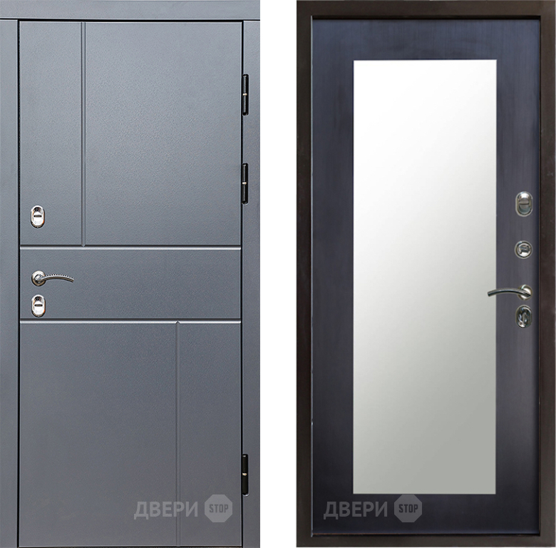 Входная Дверь Престиж TERMO с терморазрывом Горизонт Грэй Зеркало пастораль Венге 860x2050 мм