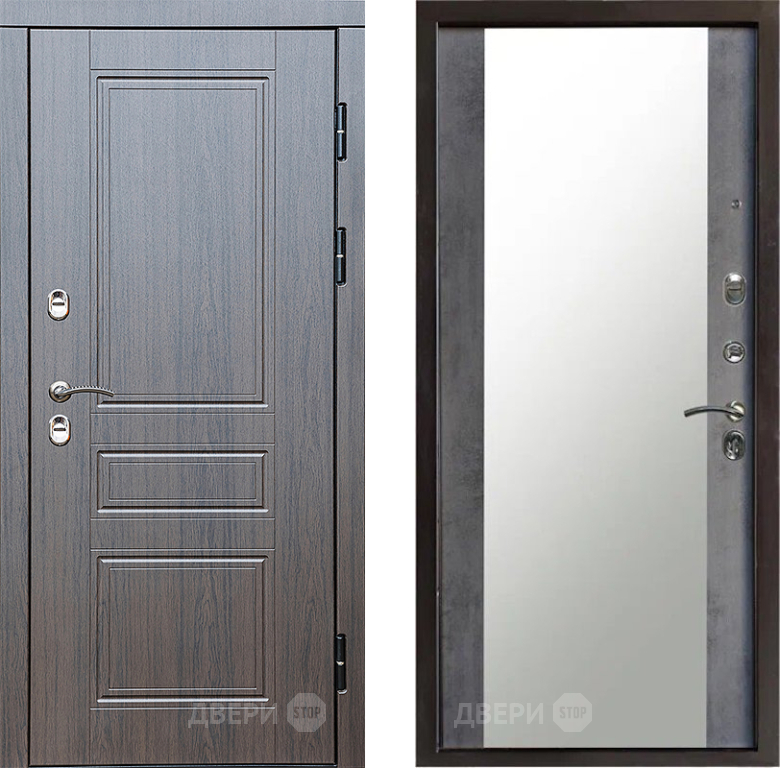 Входная Дверь Престиж TERMO с терморазрывом Классика Зеркало Бетон темный 860x2050 мм