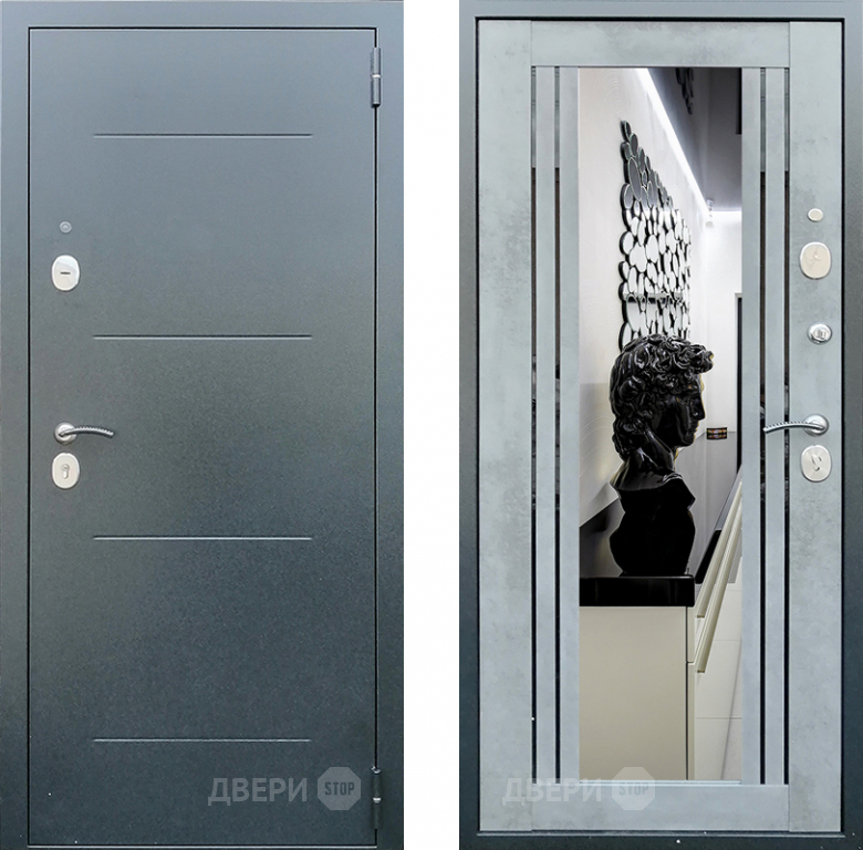 Входная металлическая Дверь Престиж Люкс с зеркалом Бетон в Лыткарино 860х2050 мм