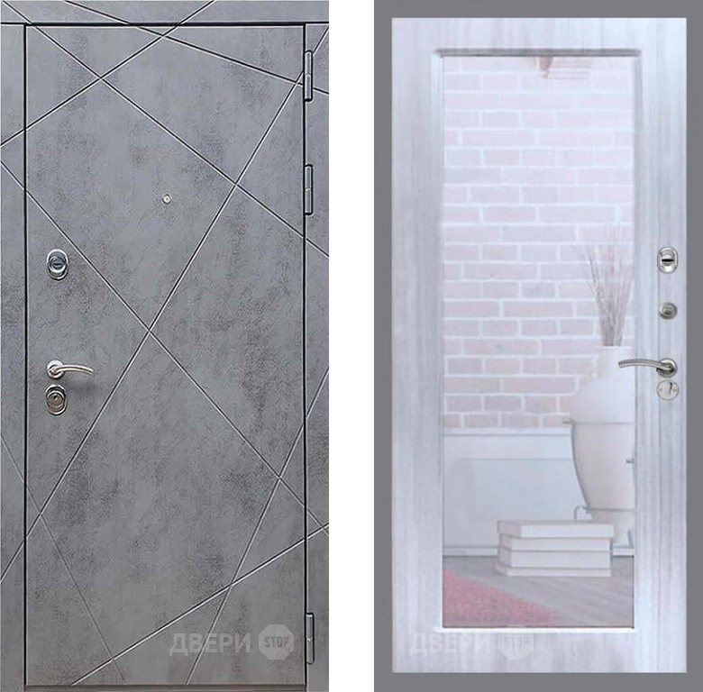 Входная Дверь Рекс (REX) 13 Бетон Темный Зеркало Пастораль Сандал белый 860x2050 мм