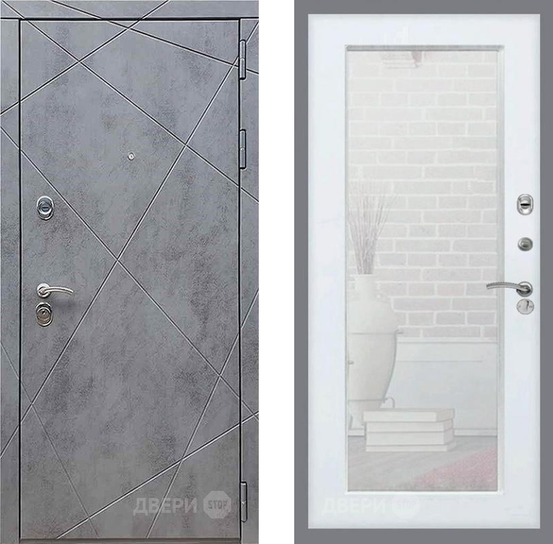 Входная Дверь Рекс (REX) 13 Бетон Темный Зеркало Пастораль Силк Сноу 960x2050 мм