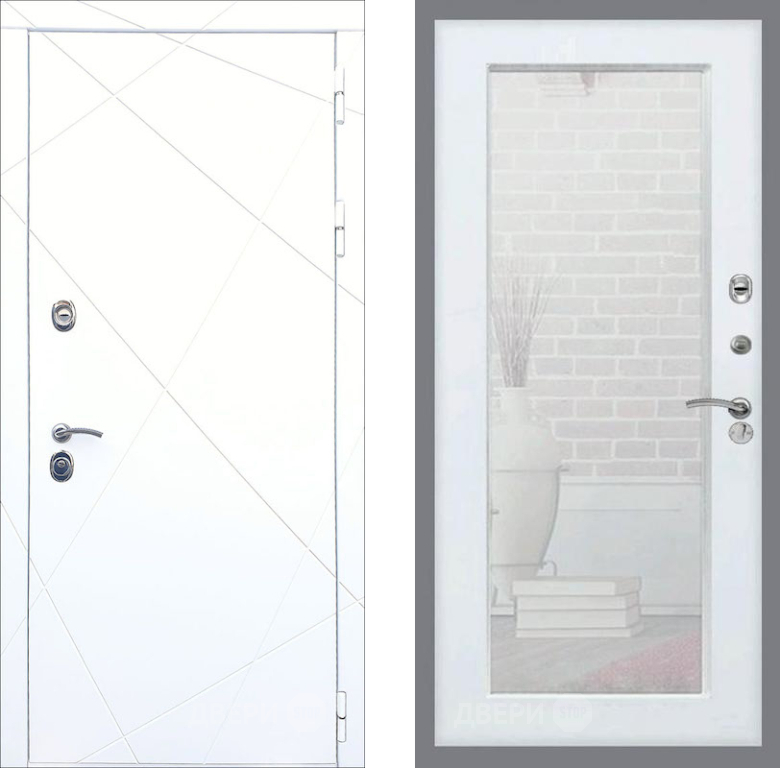 Входная Дверь Рекс (REX) 13 Силк Сноу Зеркало Пастораль Белый ясень 860x2050 мм