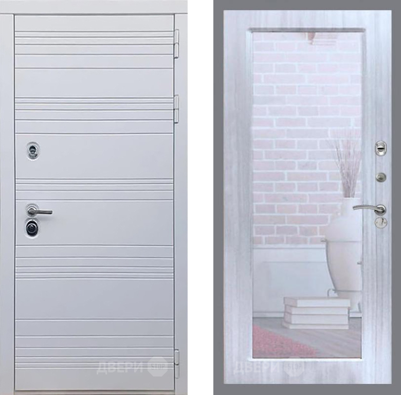 Входная Дверь Рекс (REX) 14 Силк Сноу Зеркало Пастораль Сандал белый 860x2050 мм