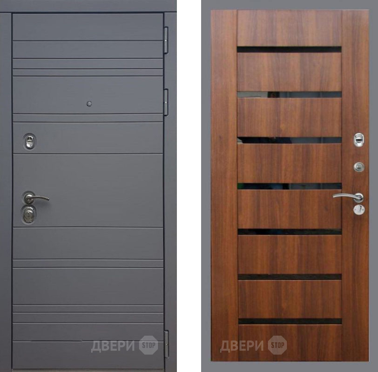 Входная Дверь Рекс (REX) 14 силк титан СБ-14 стекло черное Орех бренди 860x2050 мм