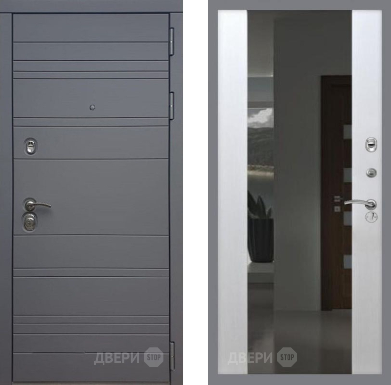 Входная Дверь Рекс (REX) 14 силк титан СБ-16 Зеркало Белый ясень 960x2050 мм