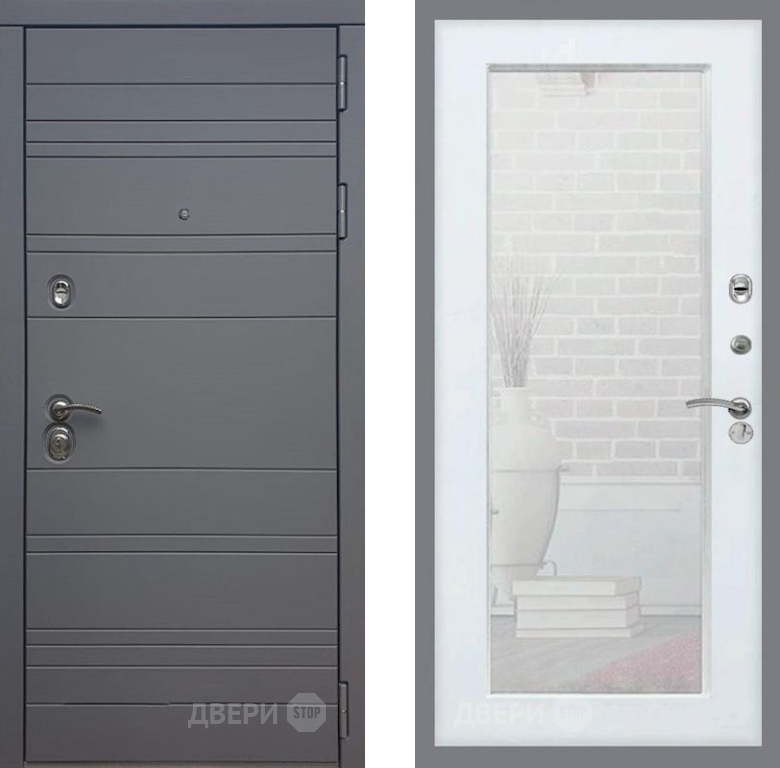 Входная Дверь Рекс (REX) 14 силк титан Зеркало Пастораль Силк Сноу 860x2050 мм