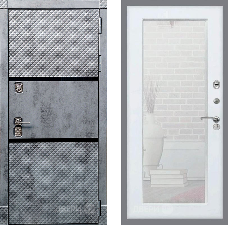 Входная Дверь Рекс (REX) 15 Бетон Темный Зеркало Пастораль Белый ясень 960x2050 мм