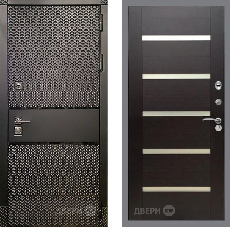 Входная Дверь Рекс (REX) 15 Черный Кварц СБ-14 стекло белое венге поперечный 860x2050 мм