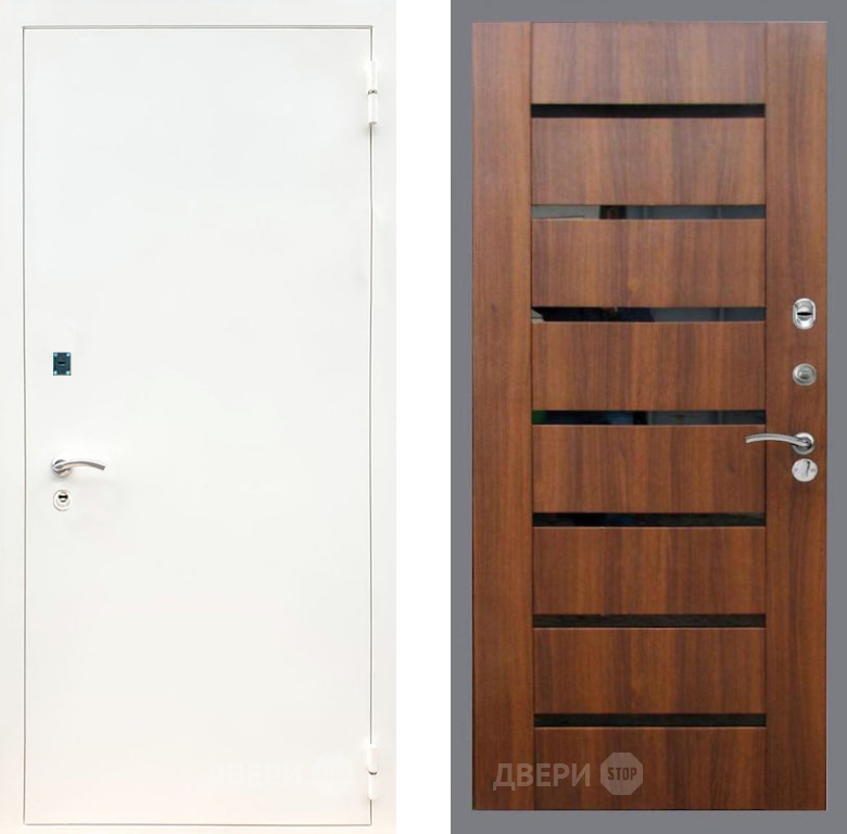 Входная Дверь Рекс (REX) 1А Белая шагрень СБ-14 стекло черное Орех бренди 860x2050 мм