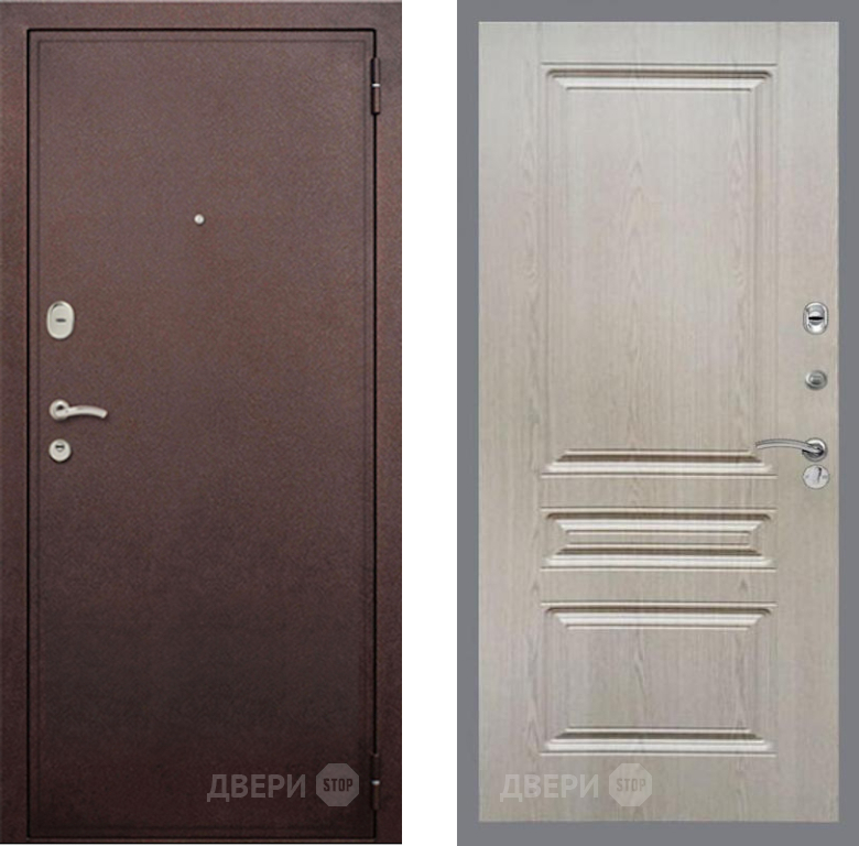 Входная Дверь Рекс (REX) 2 Медный Антик FL-243 Беленый дуб 960x2050 мм