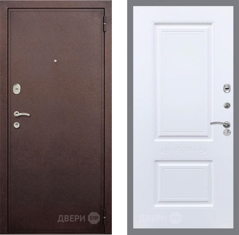 Входная Дверь Рекс (REX) 2 Медный Антик Смальта Силк Сноу 860x2050 мм