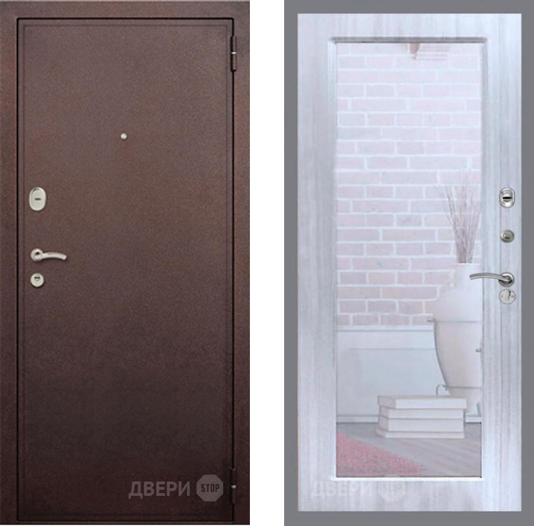 Входная Дверь Рекс (REX) 2 Медный Антик Зеркало Пастораль Сандал белый 860x2050 мм