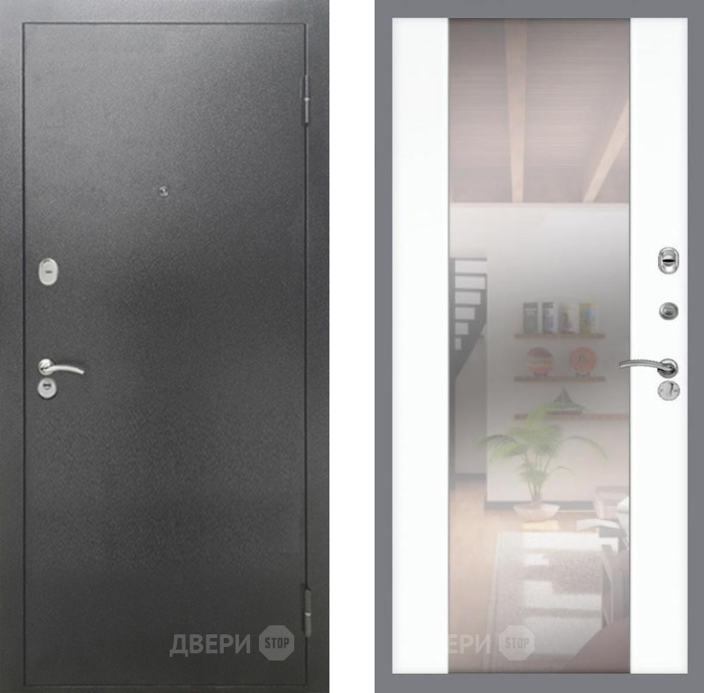 Входная Дверь Рекс (REX) 2А Серебро Антик СБ-16 Зеркало Силк Сноу 860x2050 мм