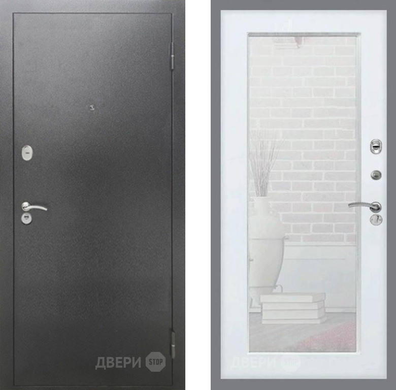 Входная Дверь Рекс (REX) 2А Серебро Антик Зеркало Пастораль Белый ясень 960x2050 мм