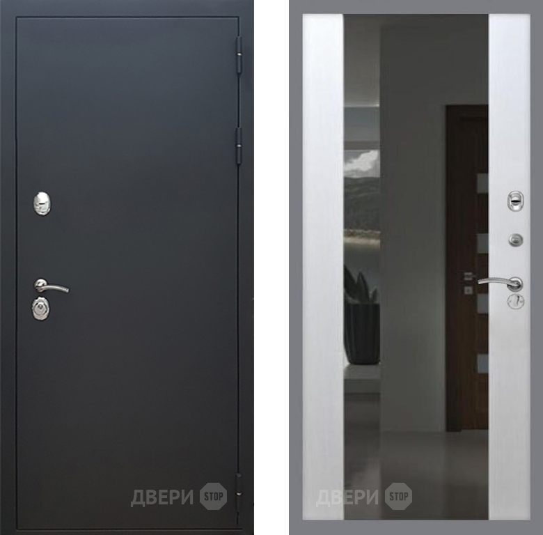 Входная Дверь Рекс (REX) 5 Черный Муар СБ-16 Зеркало Белый ясень 860x2050 мм