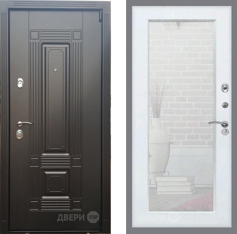 Входная Дверь Рекс (REX) 9 Зеркало Пастораль Силк Сноу 860x2050 мм