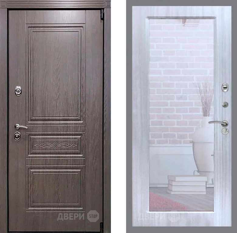 Входная Дверь Рекс (REX) Премиум-S Зеркало Пастораль Сандал белый 860x2050 мм