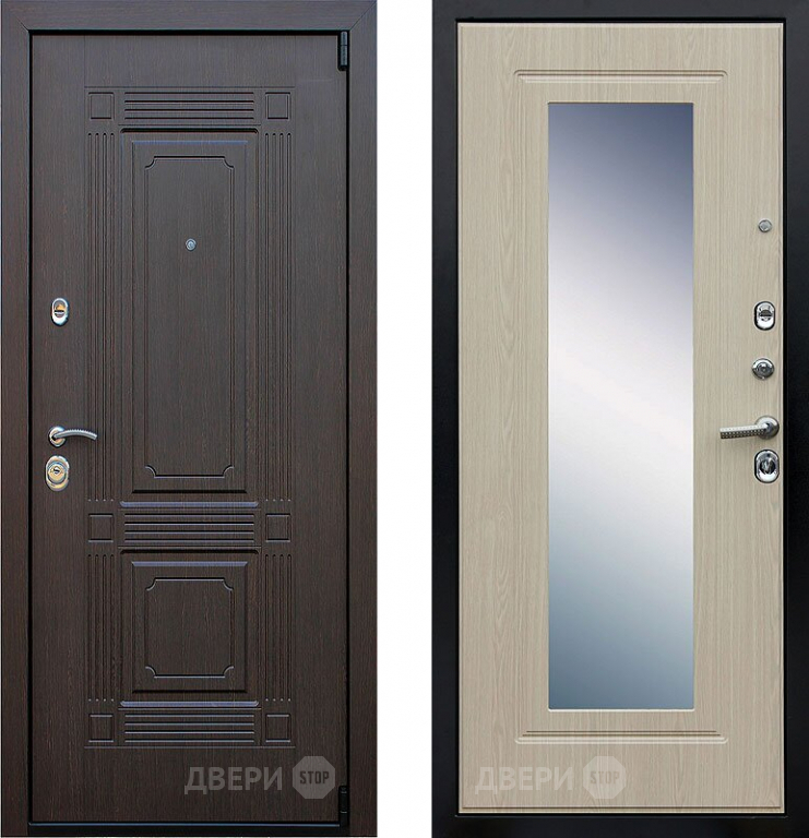 Входная металлическая Дверь АСД Викинг с зеркалом Белёный дуб в Лыткарино 860х2050 мм
