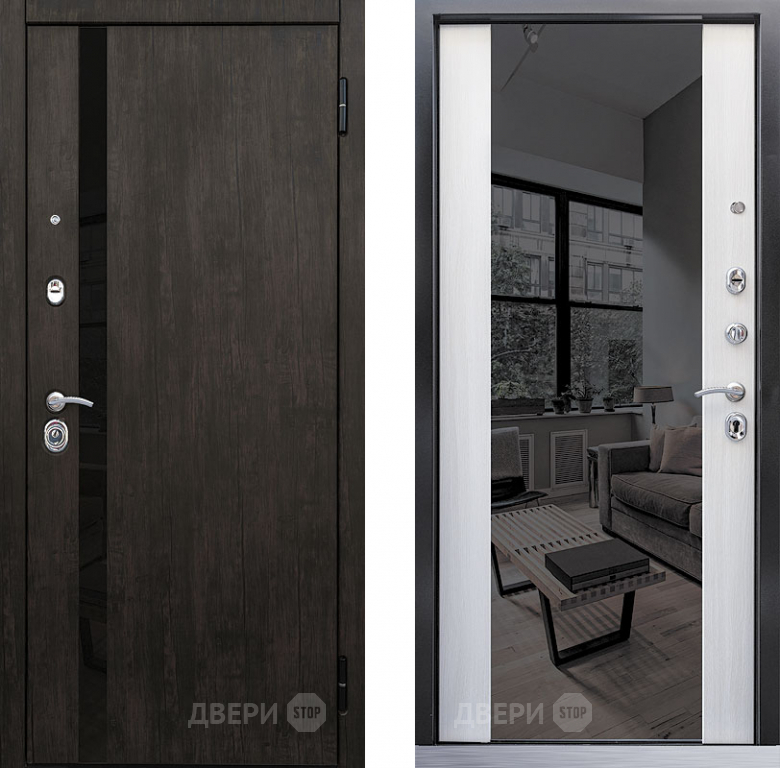 Входная металлическая Дверь Премьер зеркало тиковое дерево/лиственница белая в Лыткарино 860х2050 мм