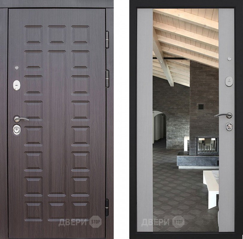 Входная металлическая Дверь S01 2К Зеркало Лиственница белая в Лыткарино 860х2050 мм
