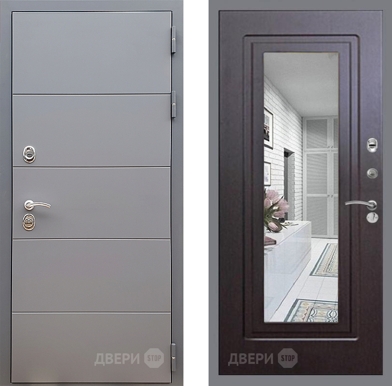 Входная Дверь Стоп АРТ ГРАФИТ Зеркало ФЛ-120 Венге 860x2050 мм