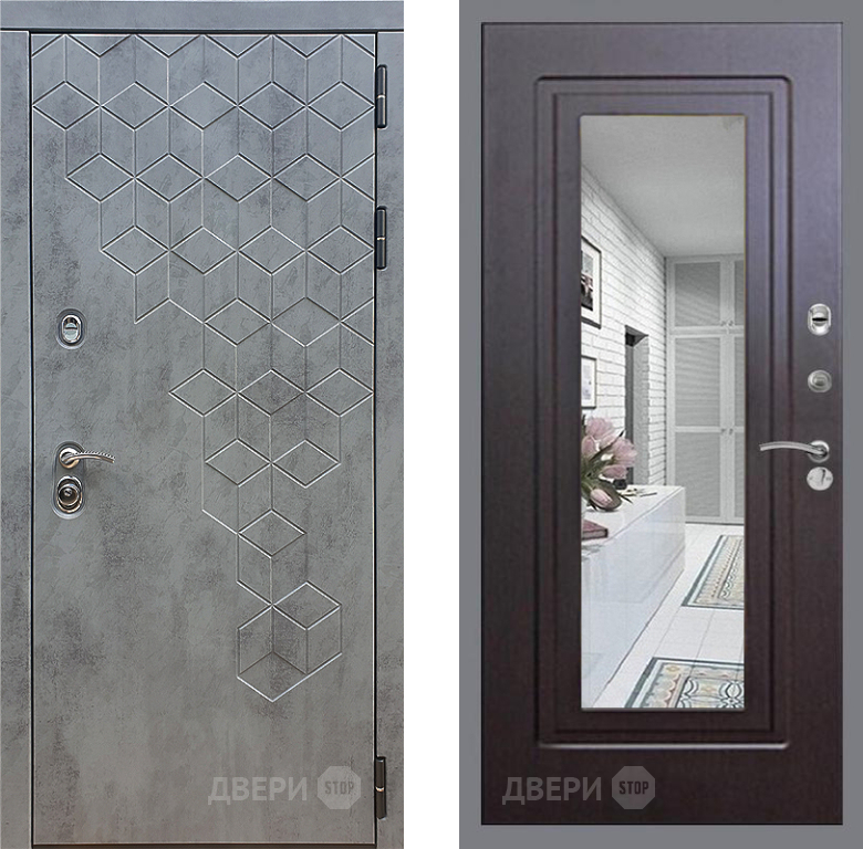 Входная Дверь Стоп БЕТОН Зеркало ФЛ-120 Венге 860x2050 мм