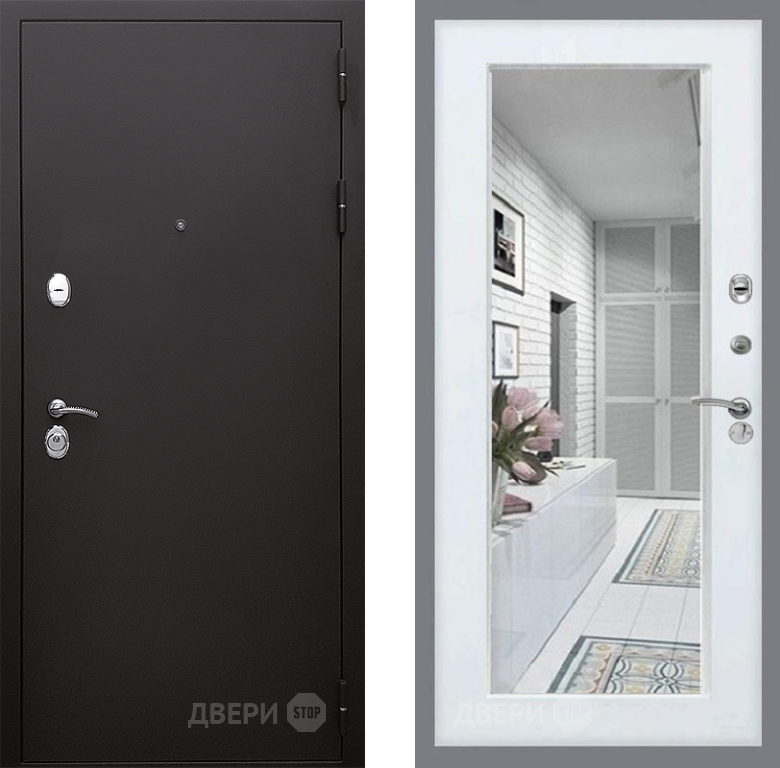 Входная Дверь Стоп КЛАССИК Шагрень Зеркало Белый ясень 860x2050 мм