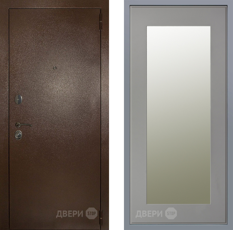 Входная Дверь Заводские двери Эталон 3к антик медь Зеркало Модерн Грей софт 860x2050 мм